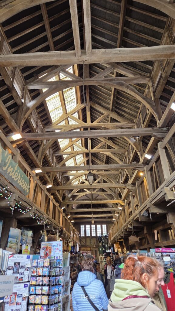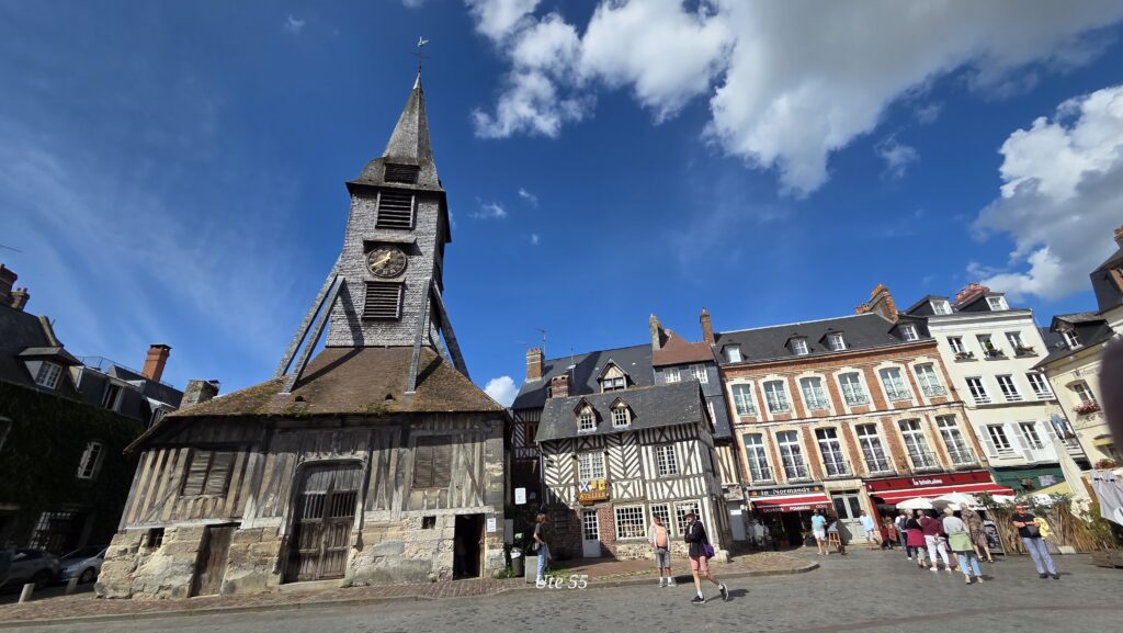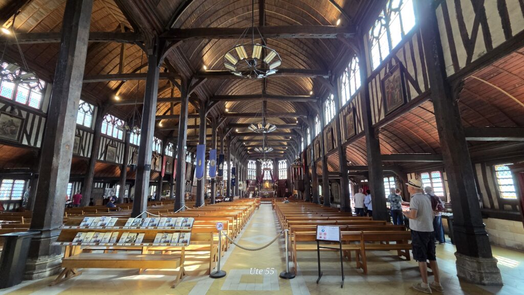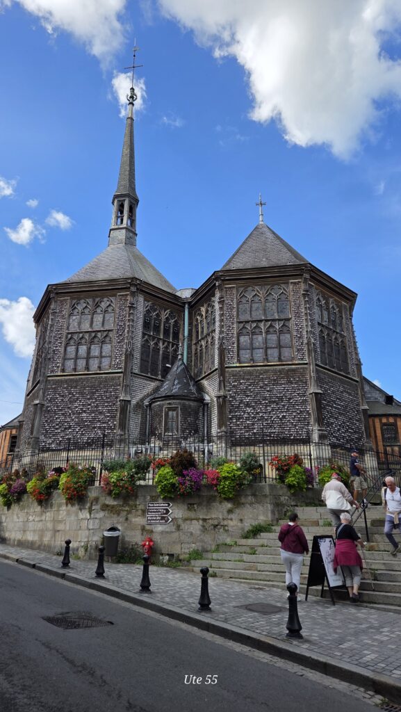 Wir sind um das Hafenbecken herumgeschlendert, um dann bei der Holzkirche Sainte-Catherine aus dem 15. Jahrhundert zu verweilen. Sie ist die größte von Schiffbauern erbaute Kirche Frankreichs. Der Glockenturm wurde in einiger Entfernung vom Kirchenschiff errichtet.