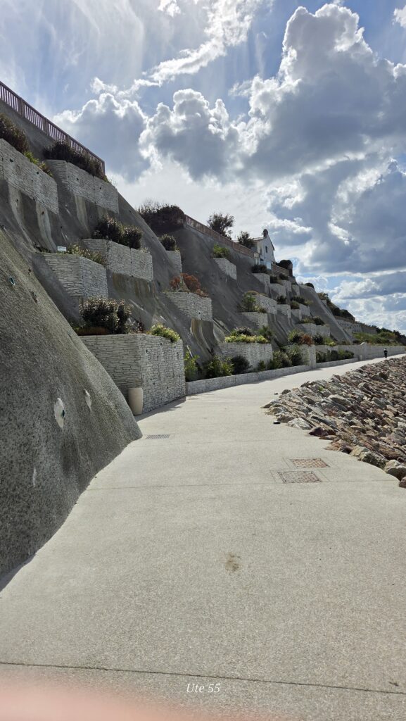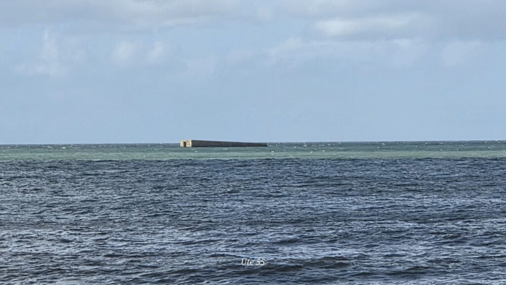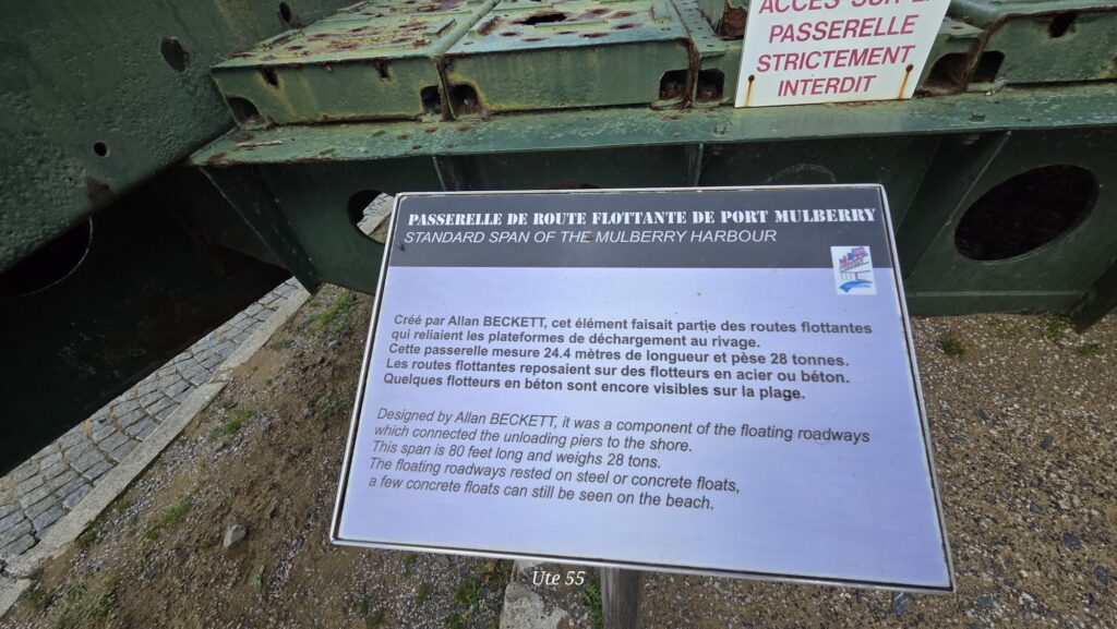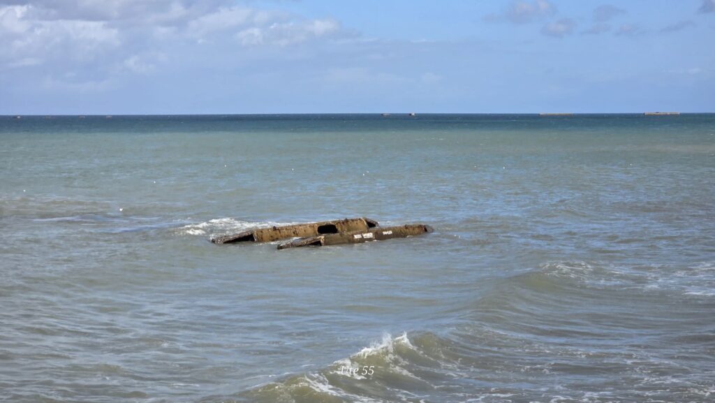 Nachdem wir uns gestärkt hatten, sind wir nach Arromanches gefahren. Dort ist der Gold Beach. Dort landeten am 6. Juni 1944 50 Minuten nach den Amerikanern an der Omaha Beach, die englischen Soldaten. Hier konnten wir im Meer die Überreste des künstlichen Hafens, der 14. Juni 1944 in Betrieb genommen wurde, sehen.