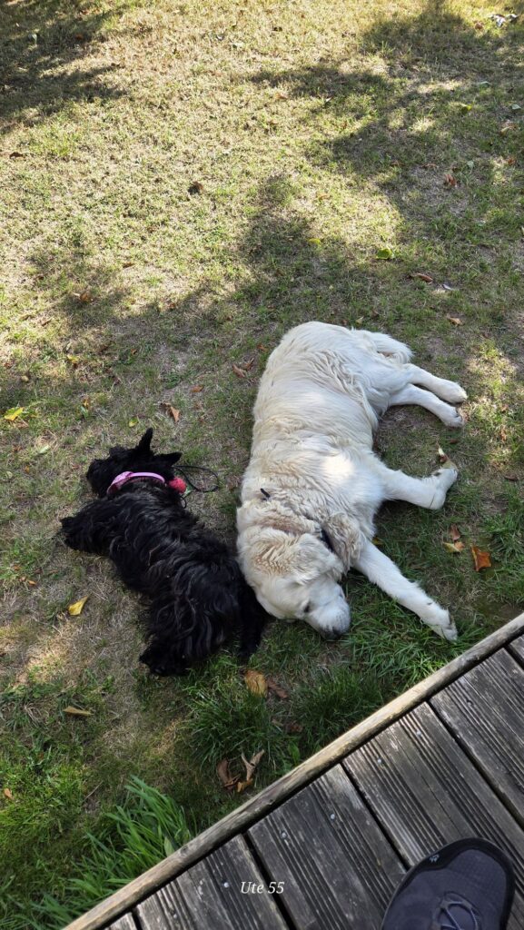 Da genießen wir doch einfach mal die Ruhe und die Faulheit. Pelle und Greta brauchten heute auch mal einen Tag Ruhe vor dem Autofahren.