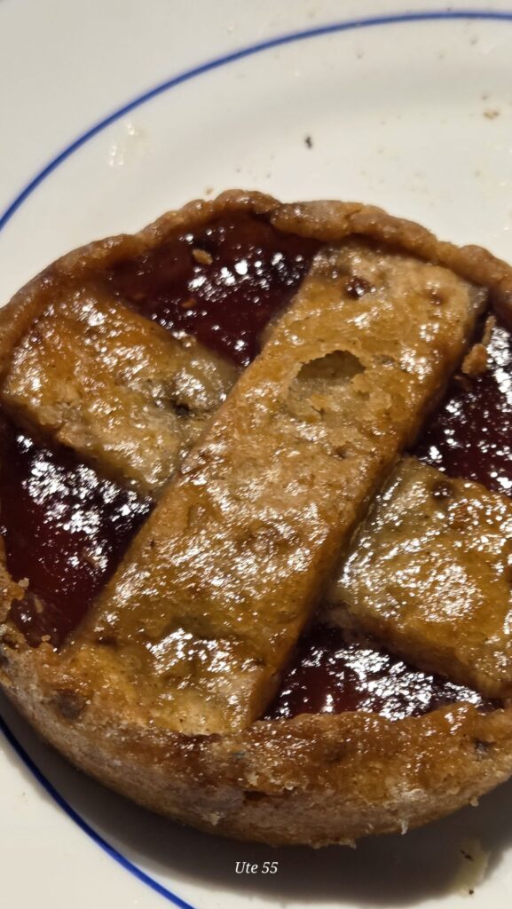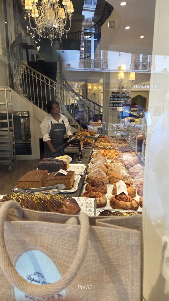 Aber als wir die ersten schönen Häuser mit Geschäften und einigen Gelegenheiten für einen leckeren Snack erreichen, steigen die Lebensgeister. Den Snack gönnen wir uns auch. Ein Stück Quiche und ein Schinken Baguette.