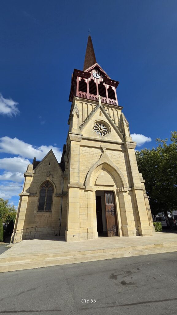 Auf dem Rückweg halten wir noch schnell bei der Église Saint-Michel. Man ist sich nicht einig, ob das Gotteshaus 3 oder 6 Architekturstile vereinigt. Auf jeden Fall ist der farbenfrohe Glockenturm auffällig.