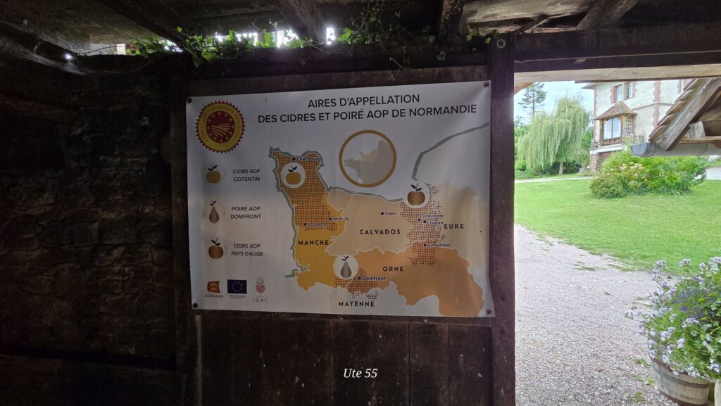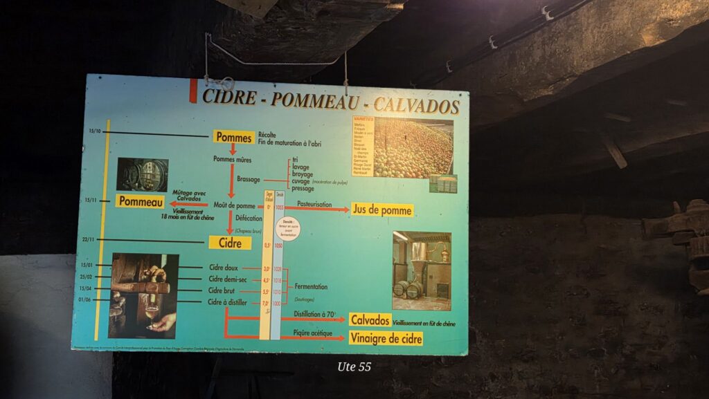 Guck mal da. Ein Wegweiser zu einer Cidre Destille. Cave du Manoir de Grandouet. Da fahren wir hin. Oder ist die Straße zu klein? Ach was wir fahren, soll ja nur 1 km sein.