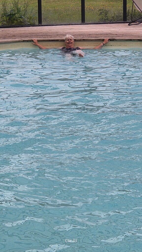 Jetzt entschließen wir uns, doch noch ins Schwimmbad zu gehen. Das Knie muß ja trainieren.  Vielleicht hilft es ja.